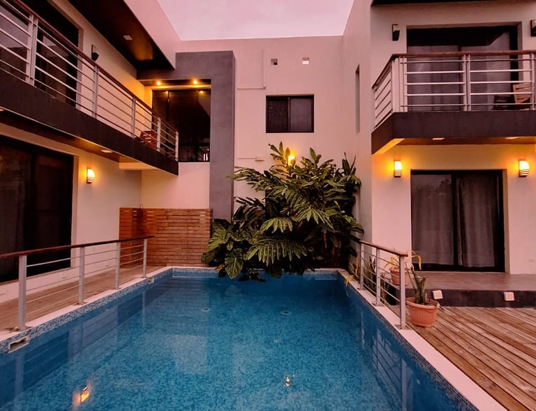Explore our fully equipped villas with modern amenities. AC, Smart TV with digital cable, 100 MBPS wifi, coffee maker, microwave, all kitchen utensils, bedroom & bathroom, and swimming pool for a comfortable stay in Belize.