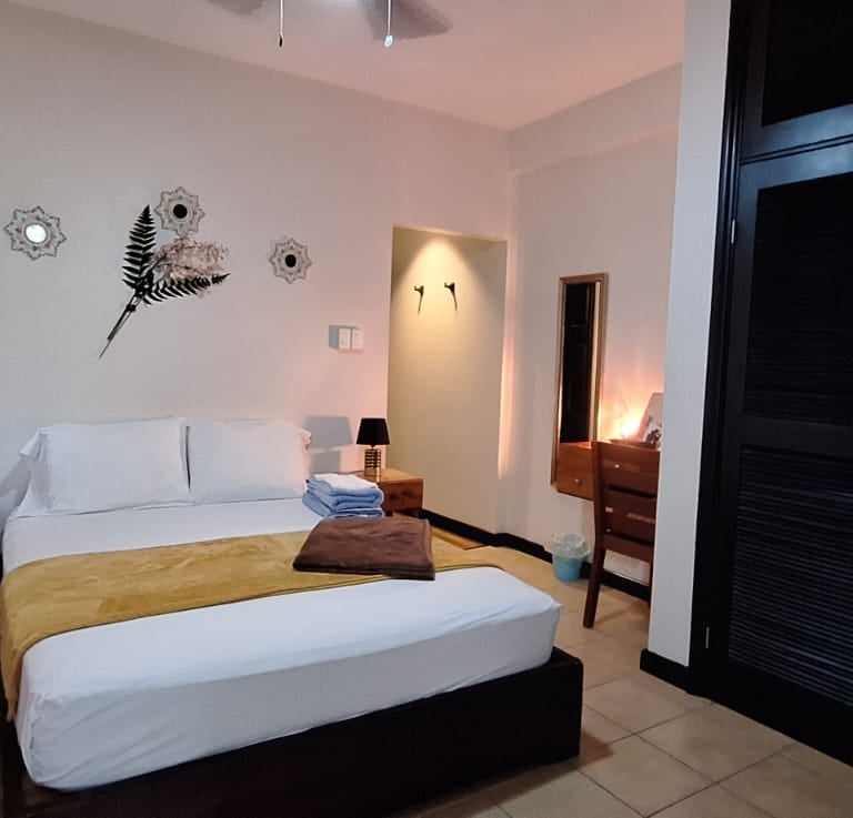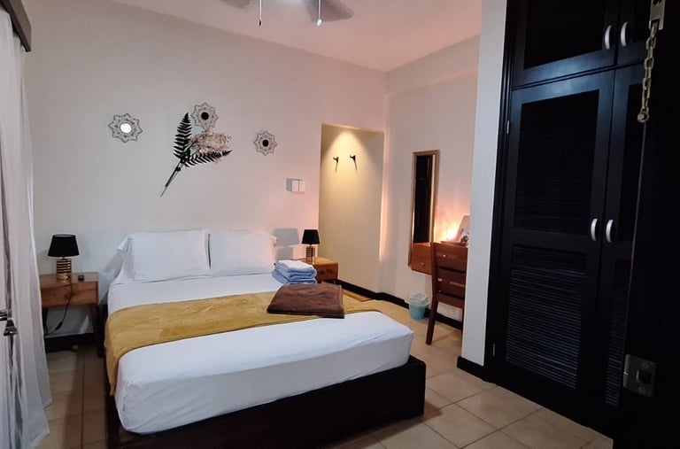 Experience comfort in our two-bedroom villa, featuring homestyle living with essential appliances, high-speed internet, and a swimming pool, just minutes from downtown Belize City and the airport.